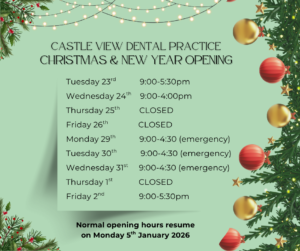 With only a few weeks to go until Christmas, please be aware that our opening hours will change slightly over the Christmas break. In case of a dental emergency while we are closed, please call Access Dental on 03330 063 300 or NHS 111 choosing the dental option. Our normal working hours will resume on Thursday 2nd January 2025